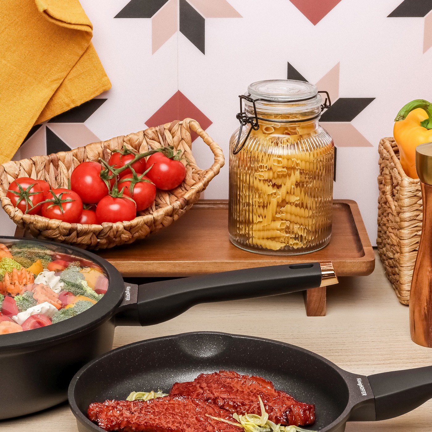 Wysokość słoika wynosi 15,5 cm (bez pokrywki), dzięki czemu pomieści większą ilość produktów sypkich. Doskonale nadaje się do przechowywania mąki, ryżu, kaszy, płatków, makaronów, kawy, herbaty oraz wielu innych składników, które wymagają ochrony przed wilgocią i utratą świeżości.