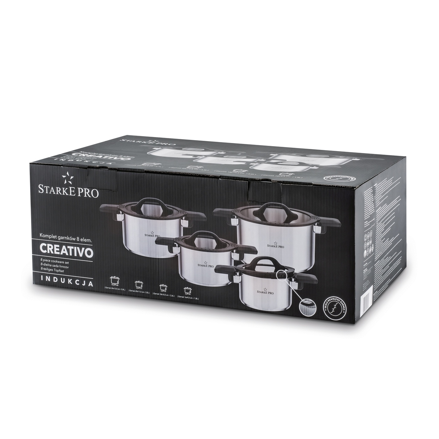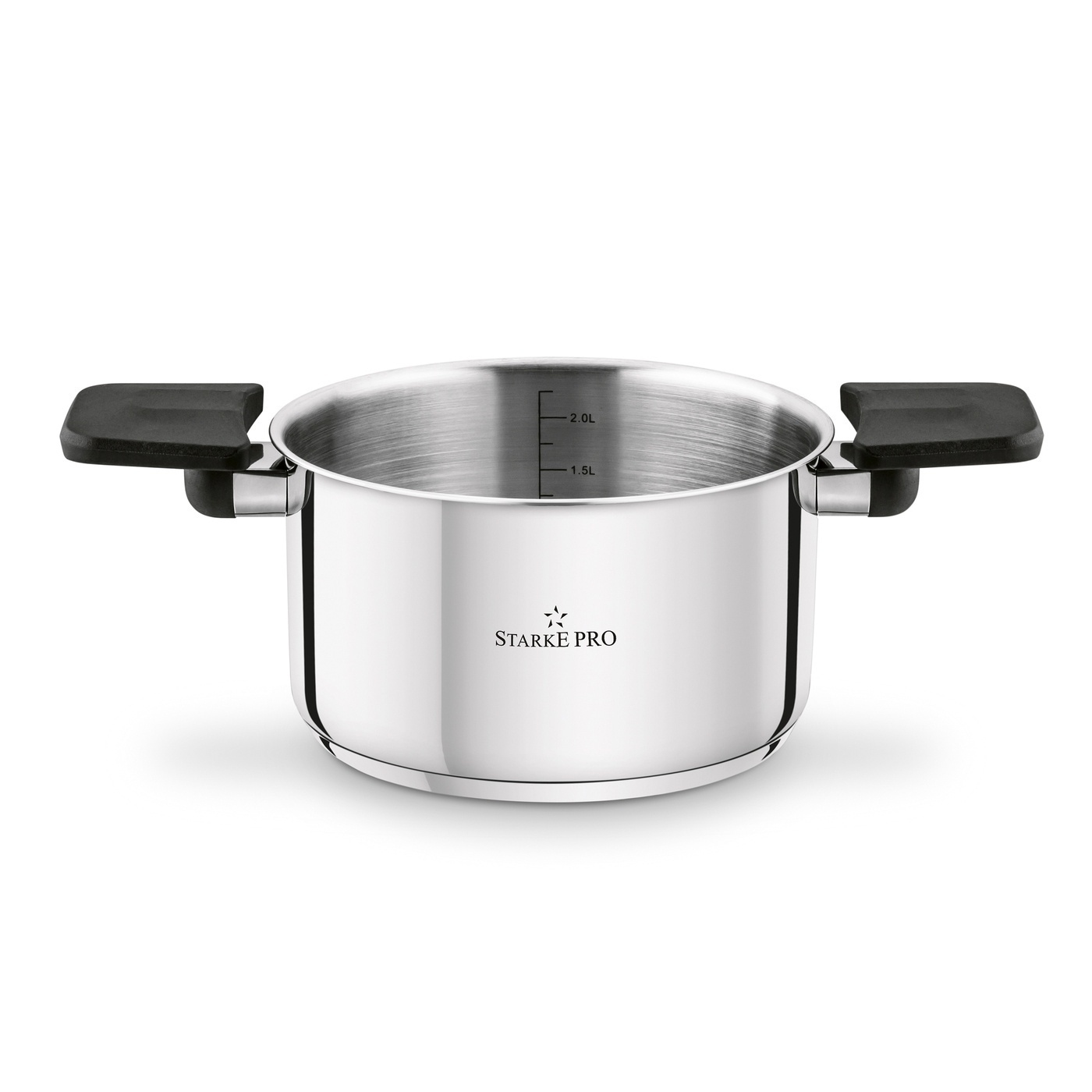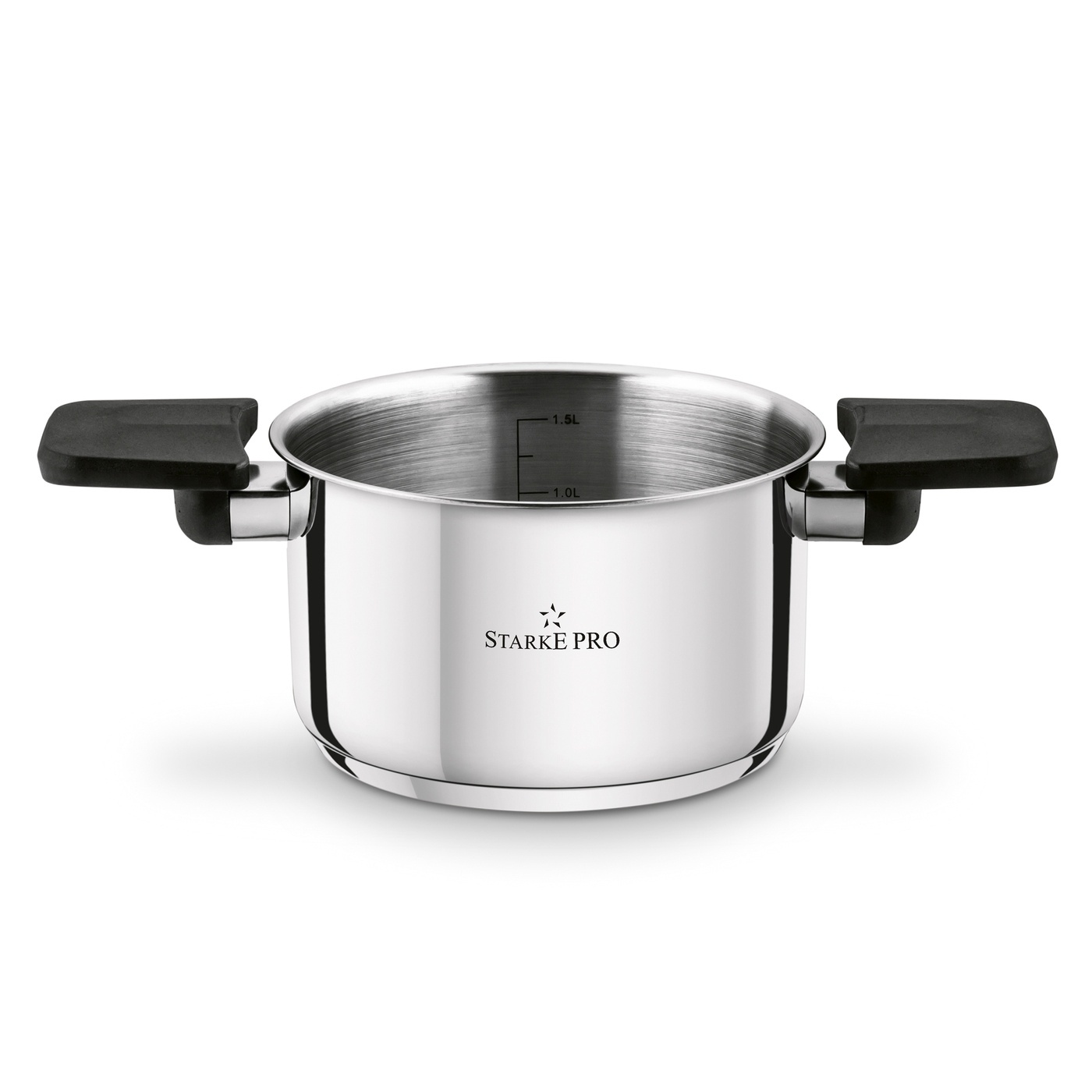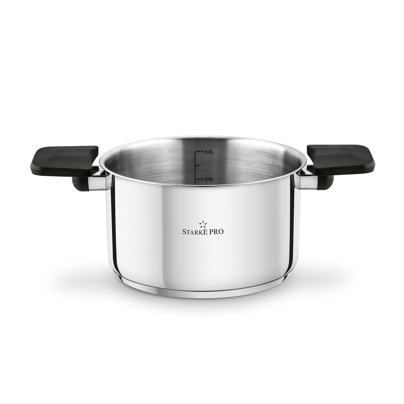 Zestaw garnków Starke Pro Creativo 8 elementów wykonano z wysokiej jakości stali nierdzewnej typu 18/10, która gwarantuje odporność na uszkodzenia oraz bezpieczne gotowanie przez wiele lat. Każdy garnek wyposażono w pięciowarstwowe dno – dzięki temu naczynia nagrzewają się równomiernie i długo utrzymują temperaturę, co sprzyja energooszczędnemu gotowaniu. Zestaw można stosować na wszystkich rodzajach kuchenek, w tym na indukcji.