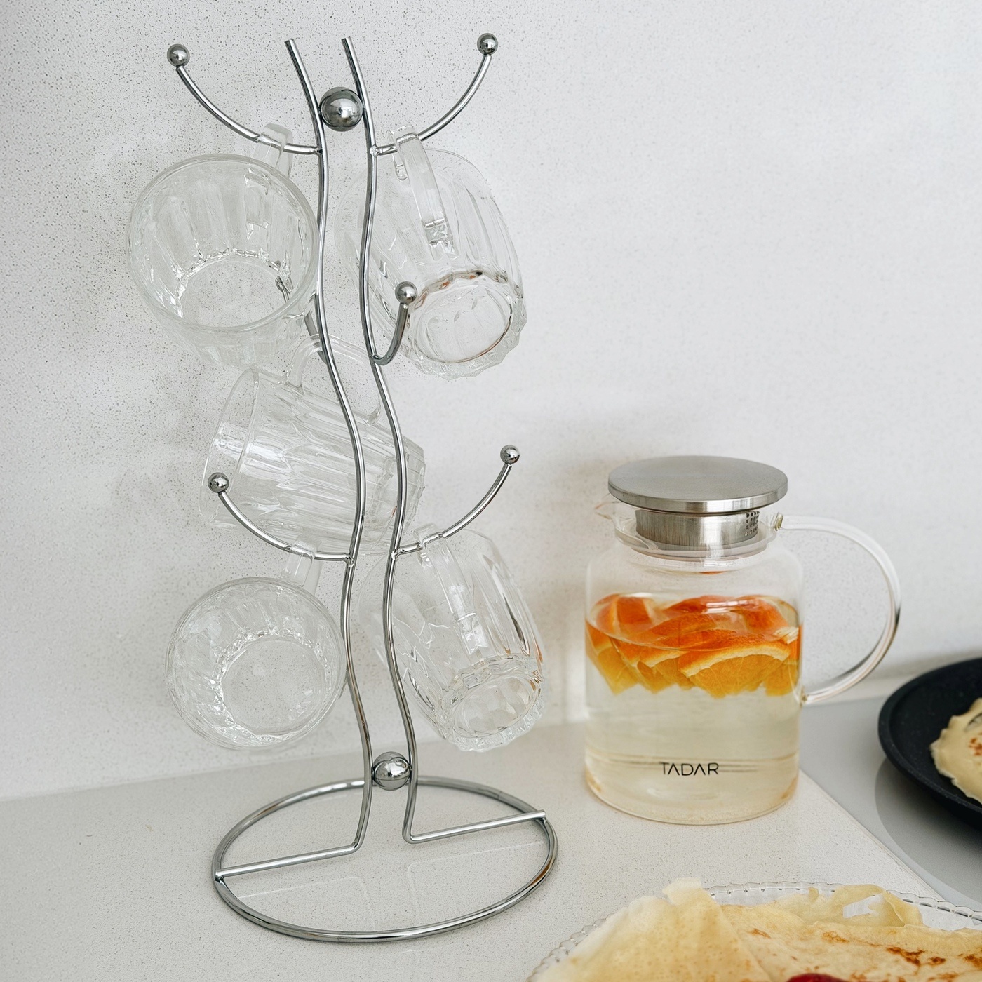 Srebrny stojak druciany na kubki Tadar Fala ma 6 ramion. Zamocowano je pod kątem i zakończono kulką. Sprawia to, że filiżanki i kubki nie zsuną się lub nie zostaną przypadkowo strącone.