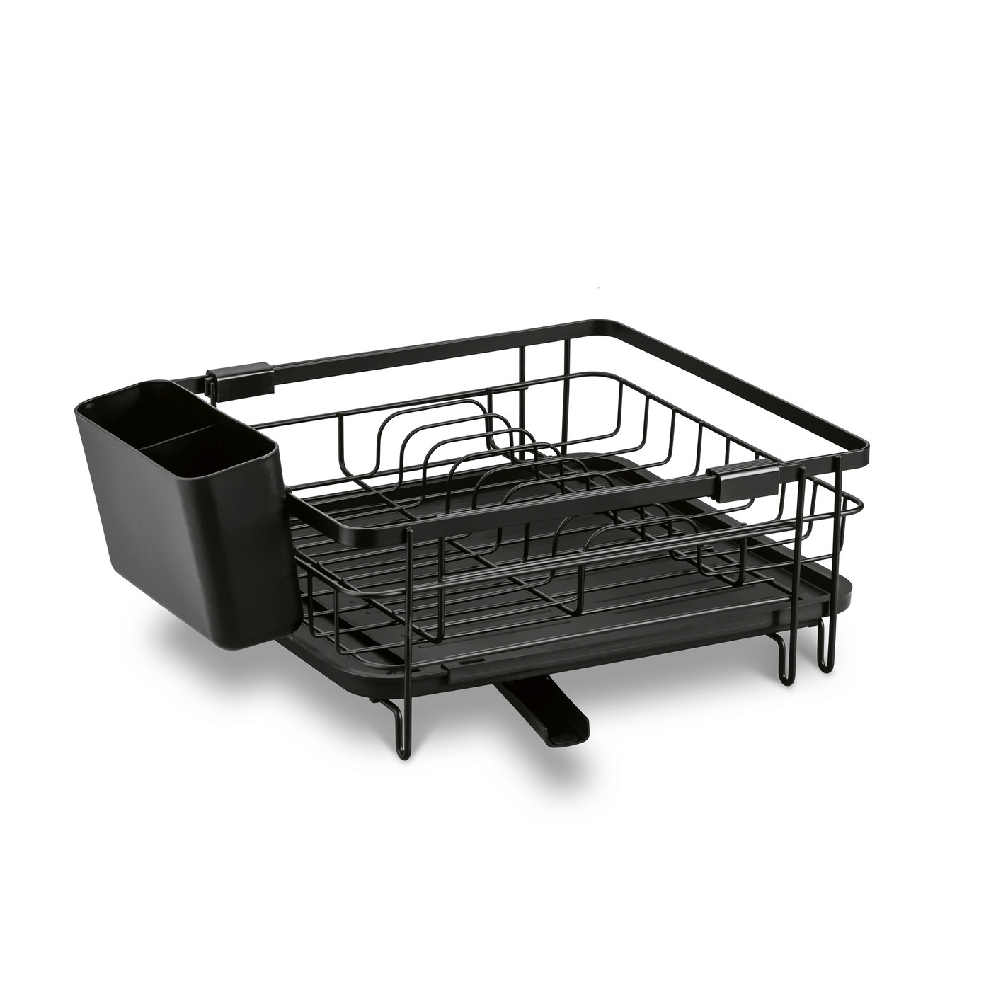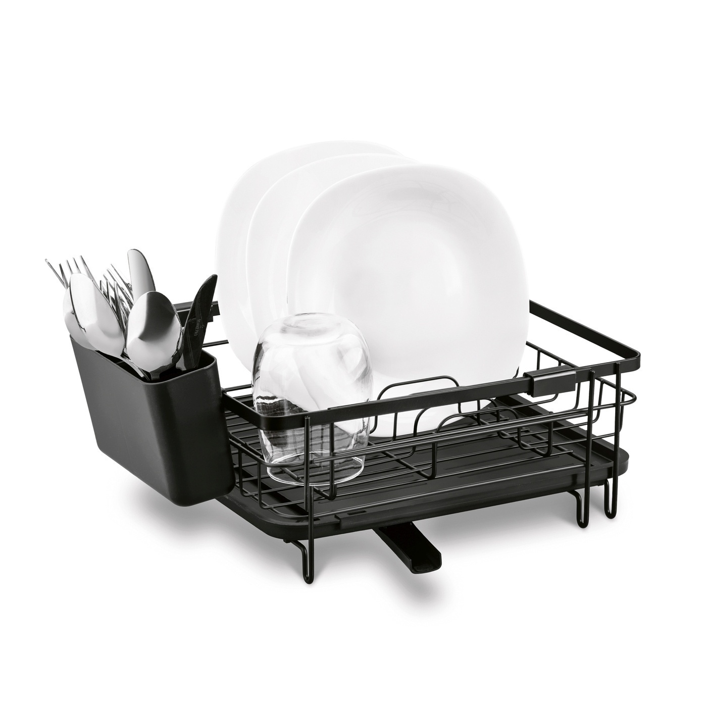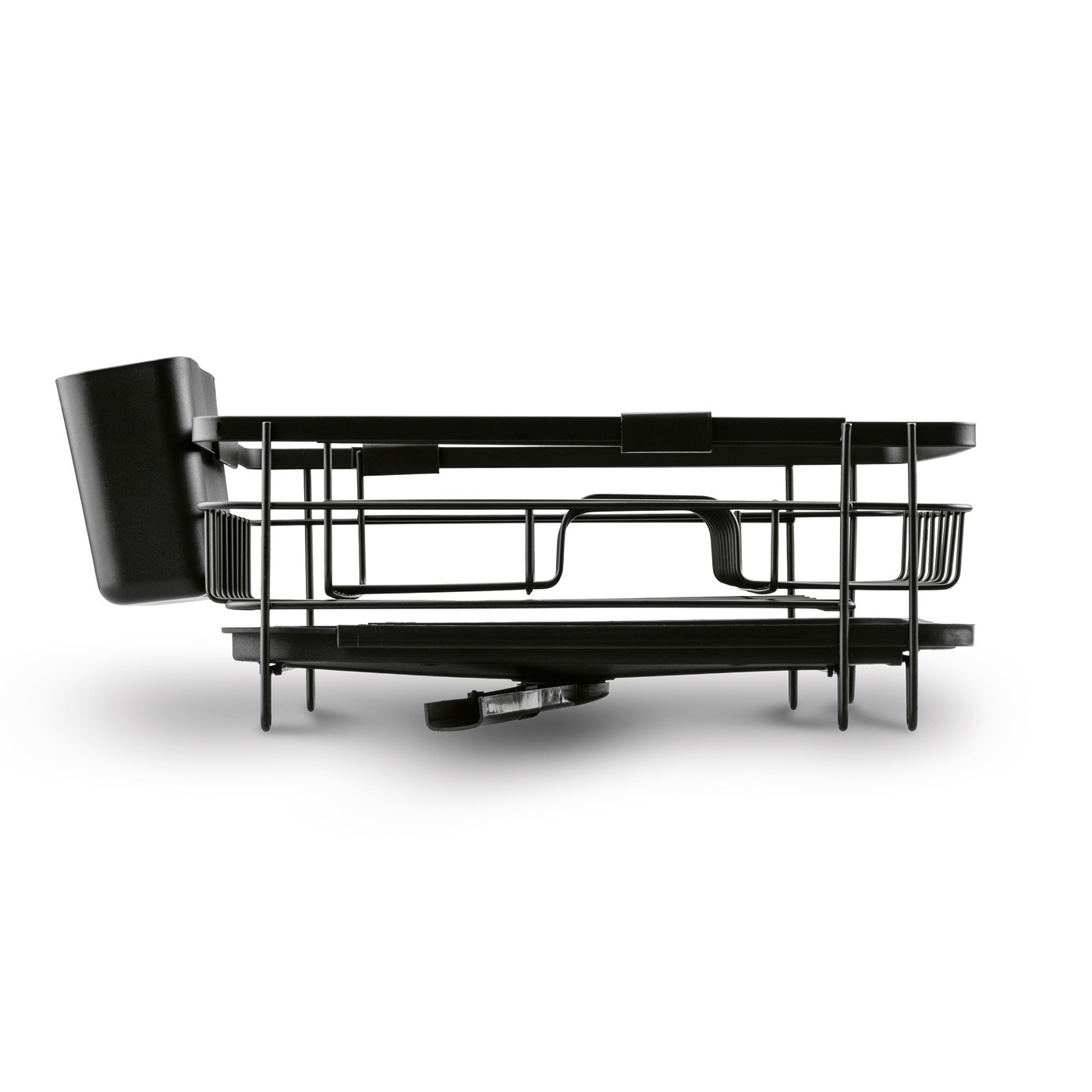 Taca połączona jest z wylewką, która automatycznie odprowadza wodę do odpływu zlewu. Jest tu też dzielony pojemnik na sztućce pozwalający uporządkować zawartość. Praktycznym rozwiązaniem w tym modelu jest łączona powierzchnia suszenia z miejscem na talerze oraz kubki.