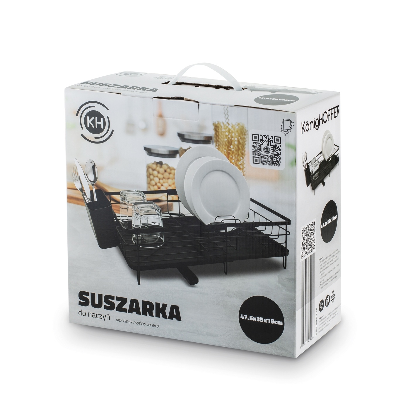 Jej jednopoziomowa konstrukcja to przykład ergonomicznego zagospodarowania przestrzeni domowej. Suszarka na naczynia Konighoffer został bardzo dobrze przystosowany do kontaktu z wilgocią oraz ma tacę do zbierania ściekającej wody.