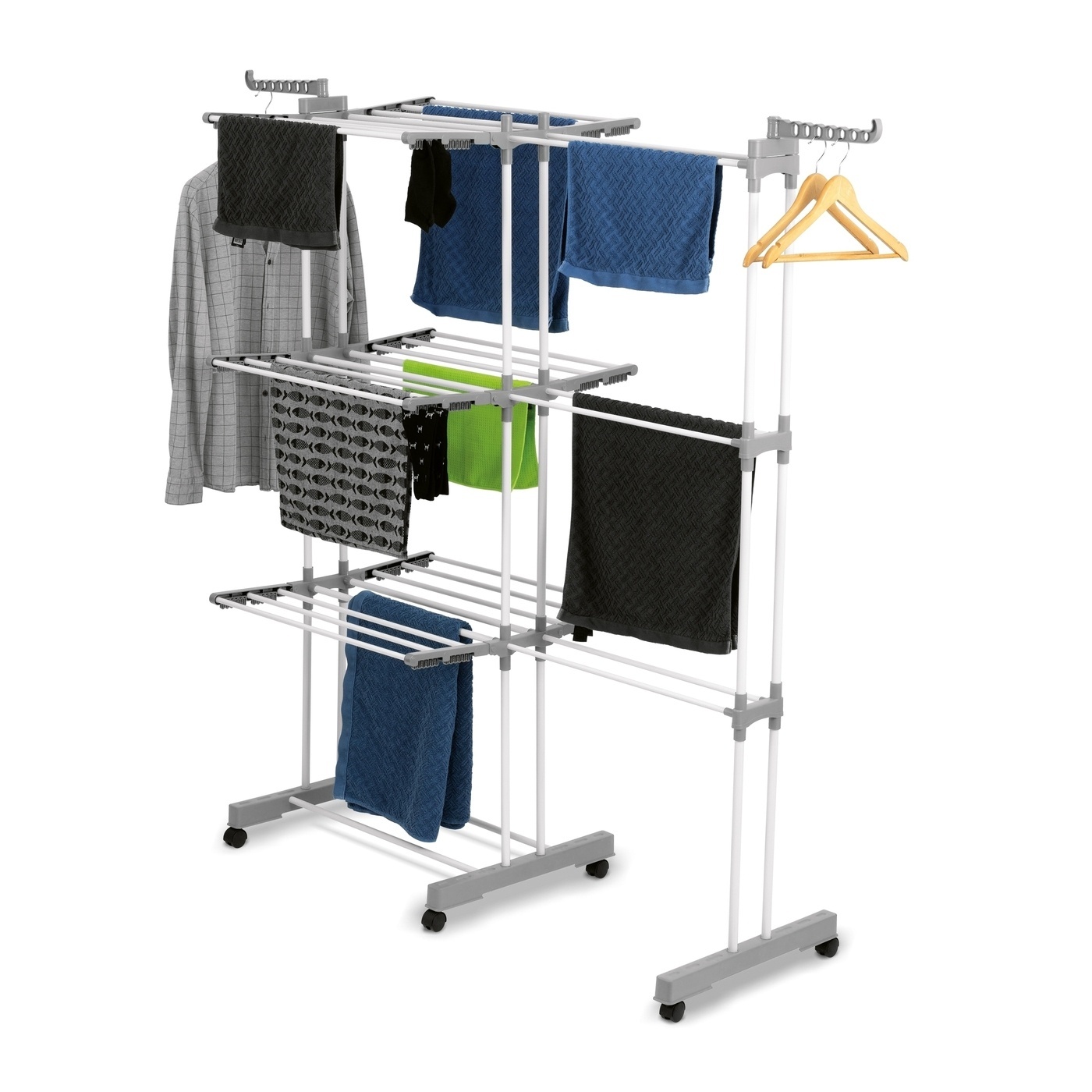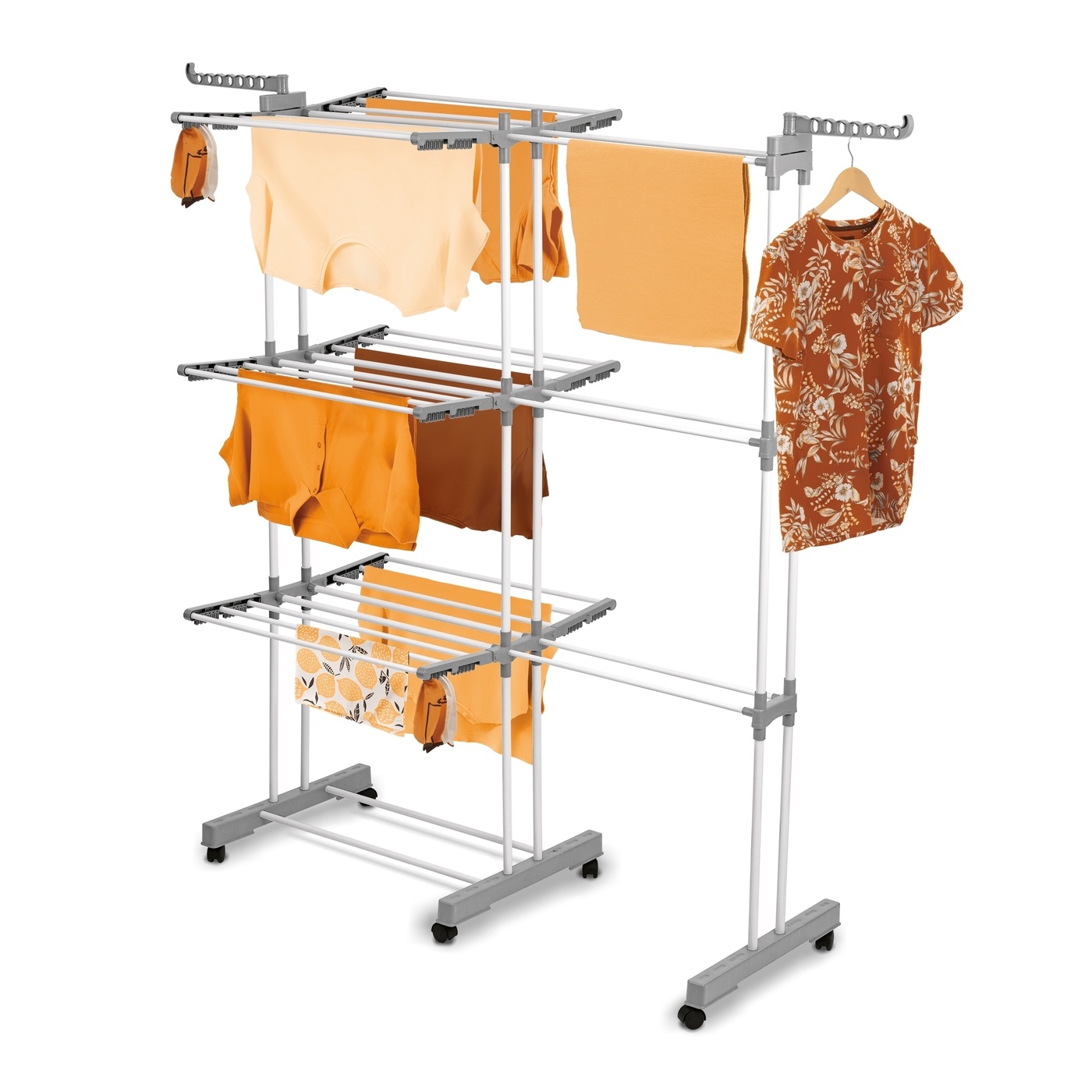 Wykonanie ze stali zapewnia suszarce do prania Ultra solidną konstrukcję. To model dla całej rodziny. Ma nawet kółka, aby łatwo można było go przestawić. Produkt wykorzystasz nie tylko w pralni. Jego składana konstrukcja ułatwia przechowywanie. Nadaje się również do postawienia na tarasie oraz jako duża suszarka balkonowa.
