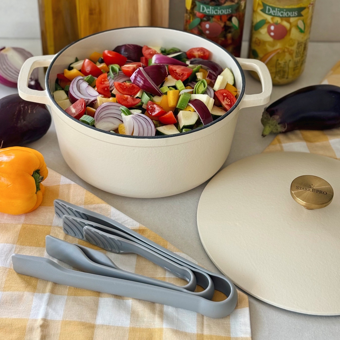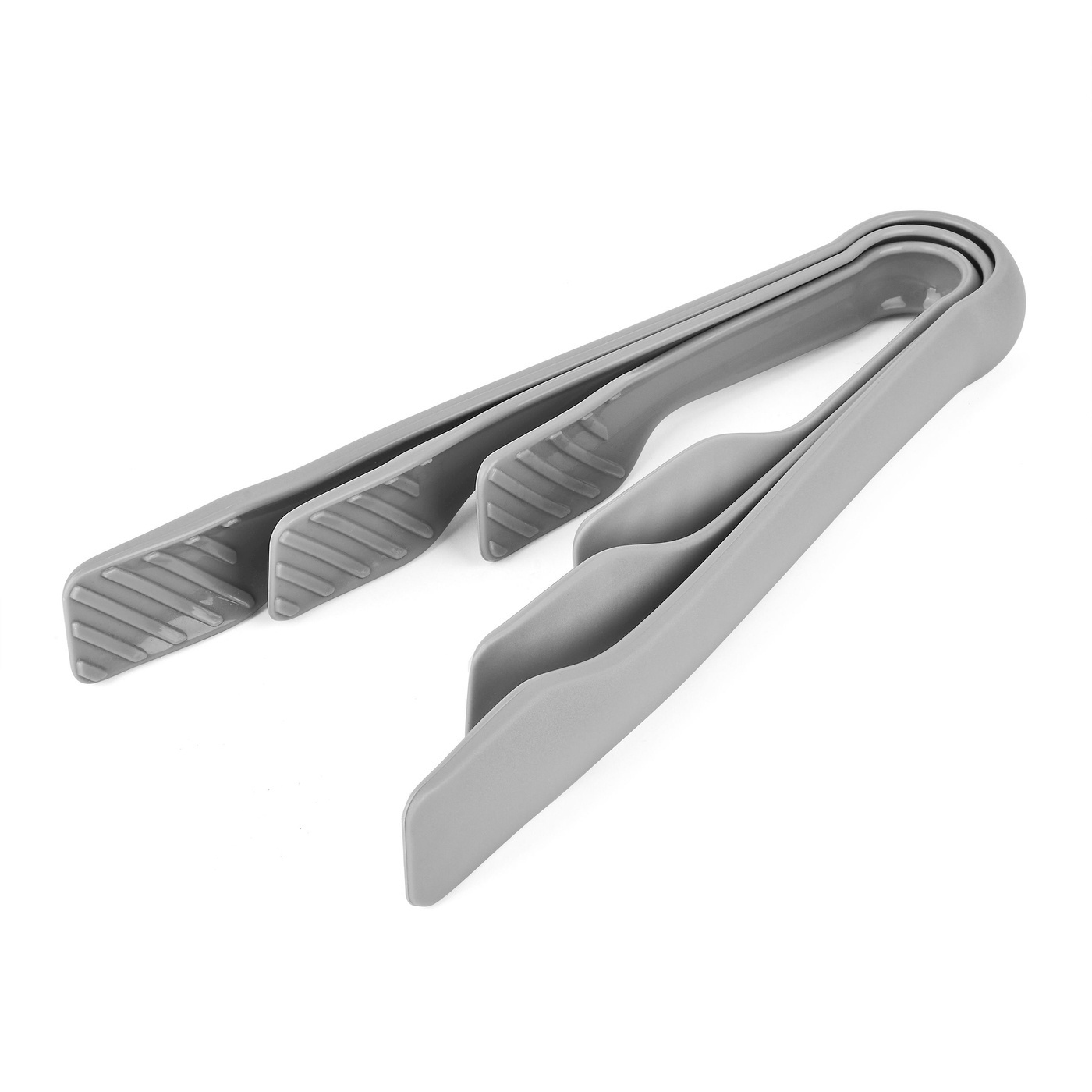 Trzy rozmiary szczypiec kuchennych z tworzywa sztucznego sprawiają, że cały komplet jest wielozadaniowy. Wybierając mniejsze, łatwiej chwycisz małe składniki. Największe pomogą ci natomiast np. z soczystymi kawałami mięsa.