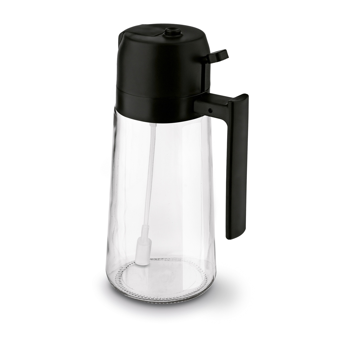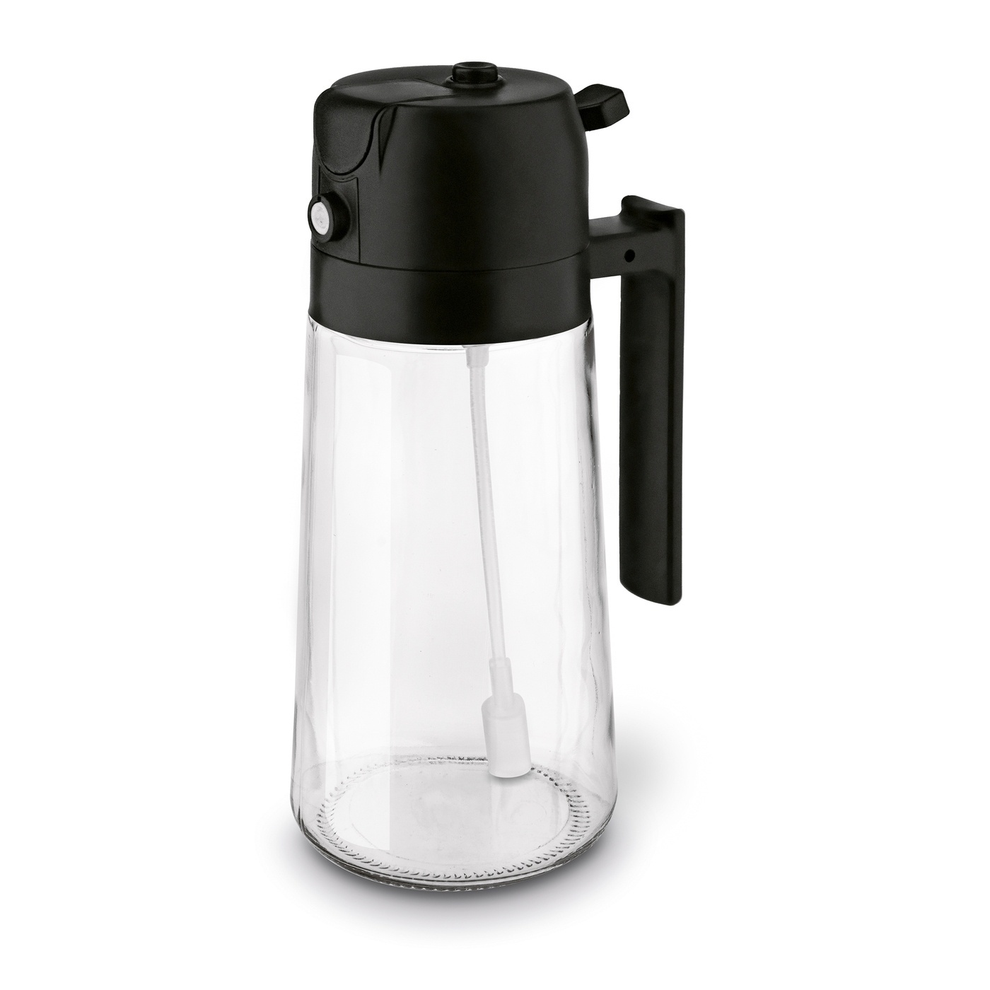 Świetnie nadaje się np. do octu. Sprawdzi się także jako produkt do dozowania i przechowywania podręcznego zapasu oliwy. W jej zamknięcie wbudowany jest spryskiwacz obsługiwany przyciskiem i ukryty otwór do klasycznego przelewania zawartości.