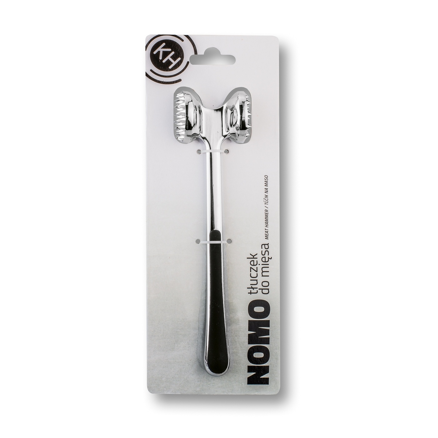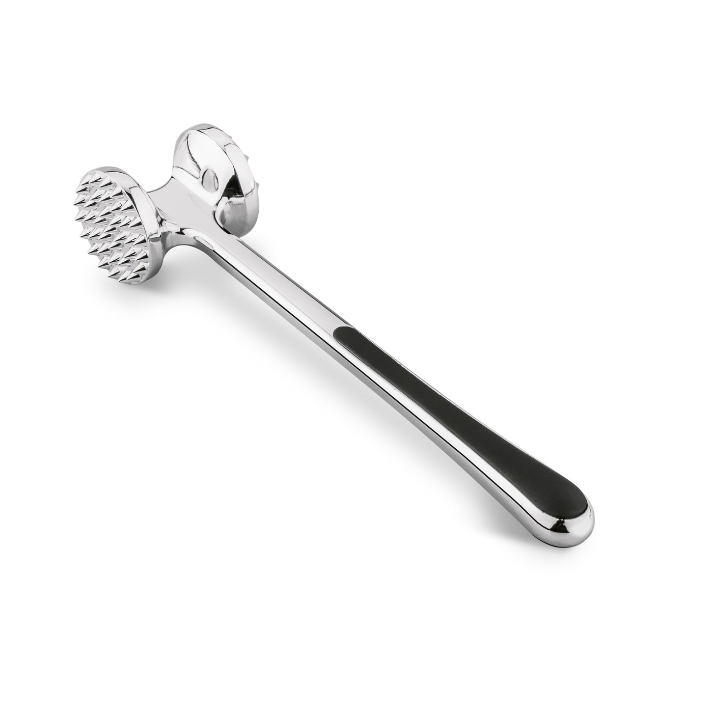 Co więcej, uchwyt tego modelu tłuczka do mięsa posiada silikonowe wykończenie w kolorze czarnym. Bardzo dobrze kontrastuje ono ze srebrnym metalem i w elegancki sposób uzupełnia wzornictwo produktu. Element ten ma również uzasadnienie praktyczne - podczas użytkowania tłuczek nie wyślizguje się z dłoni. Podwójne zakończenie to natomiast odpowiedź na różnorodne potrzeby konsumentów oraz konieczność różnego przygotowania mięsa pod konkretny rodzaj obróbki termicznej.