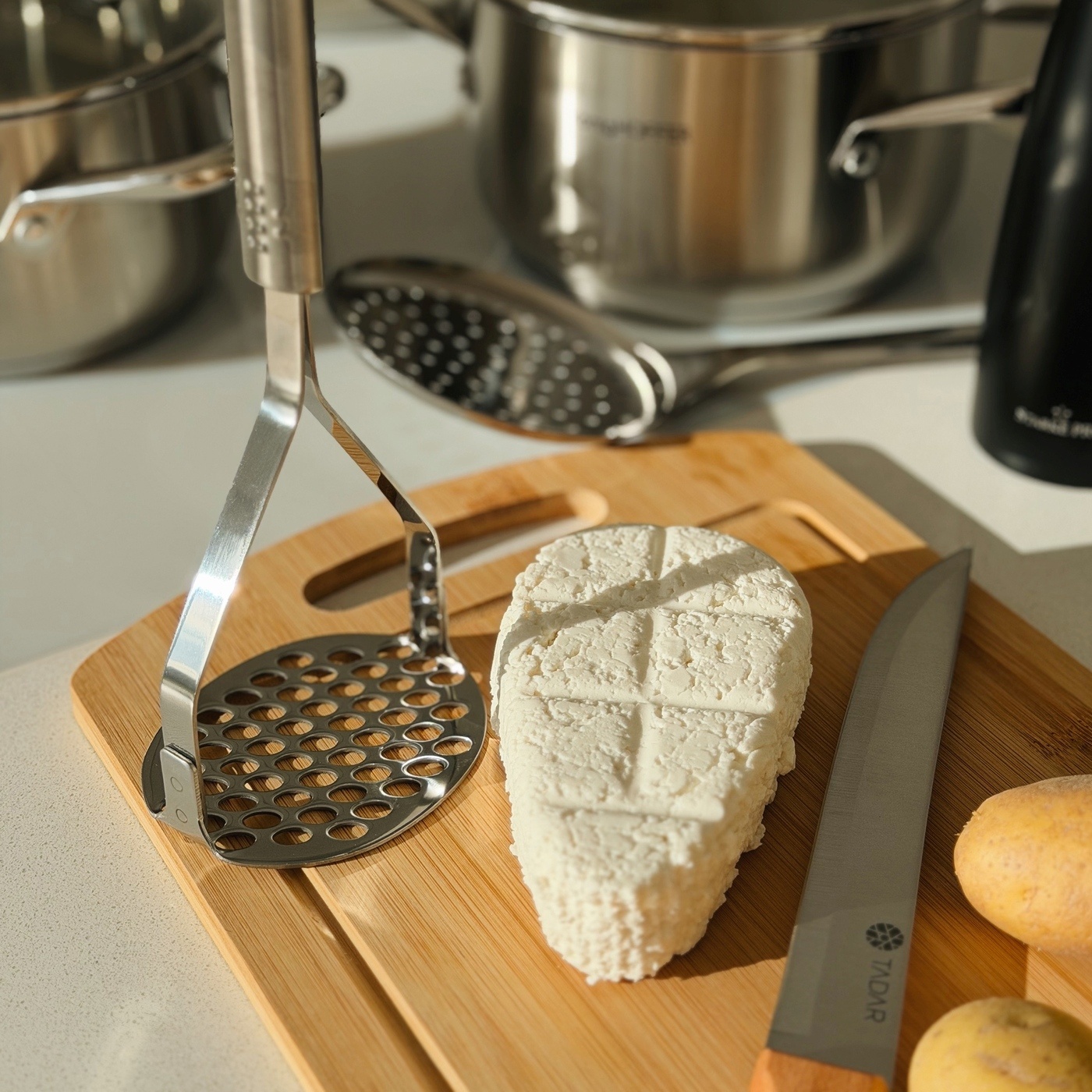 Tłuczek do ziemniaków Tadar Paula posiada drobne dziurki, która gwarantują skuteczne rozgniatanie ziemniaków. Dlatego przyrządzisz doskonałe puree.