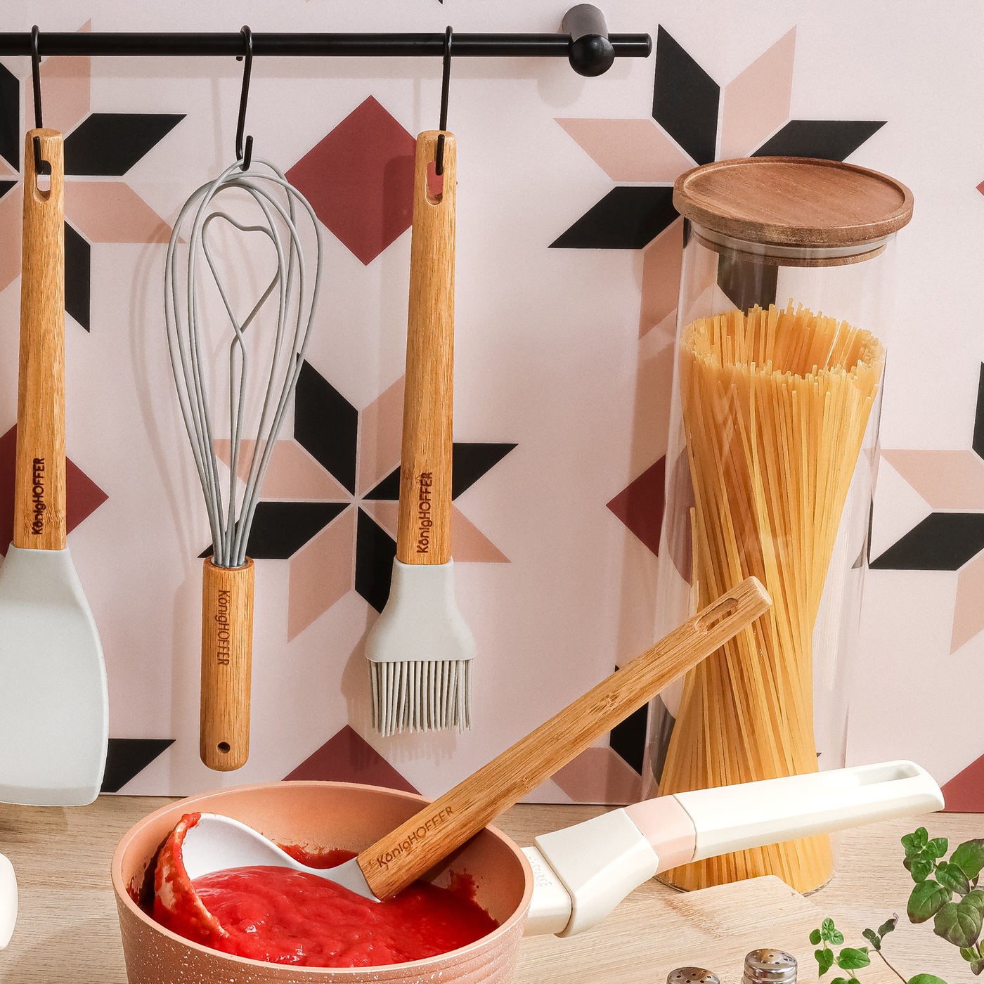 Trzepaczka do jajek i sosów silikonowa Konighoffer Gler 28 x 7 x 7 cm dzięki optymalnej budowie końcówki skutecznie łączy ze sobą składniki potraw. Wyczarujesz idealnie gładkie, pyszne kremy, naleśniki czy omlety.