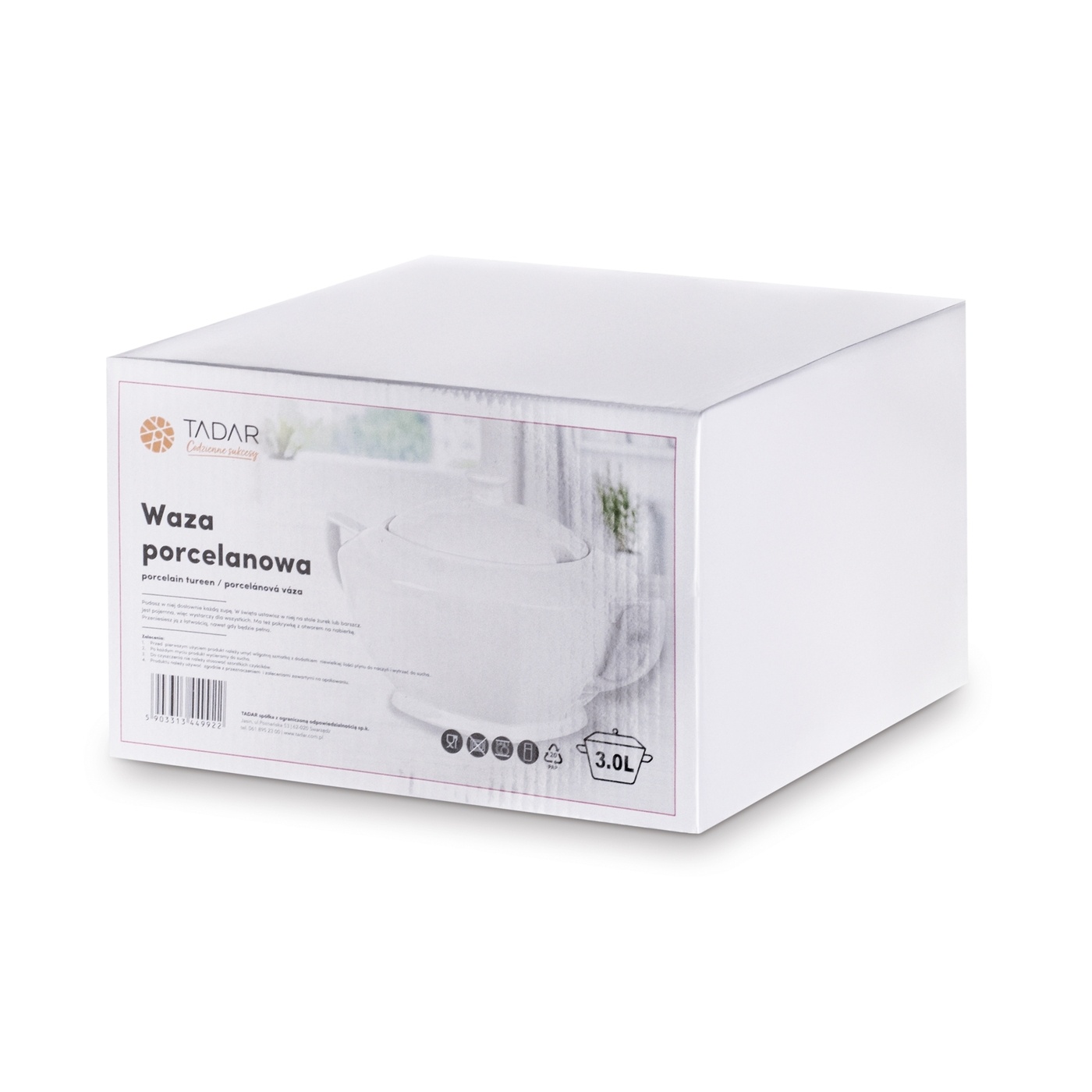 Uniwersalna biel wazy do zup Tadar 3 l pasuje niemal do każdej zastawy. Uzupełnisz o nią swój serwis obiadowy. Idealnie sprawdzi się np. jako waza do barszczu lub rosołu. Możesz w niej przechowywać zupy, bez obaw o ich aromat i smak.