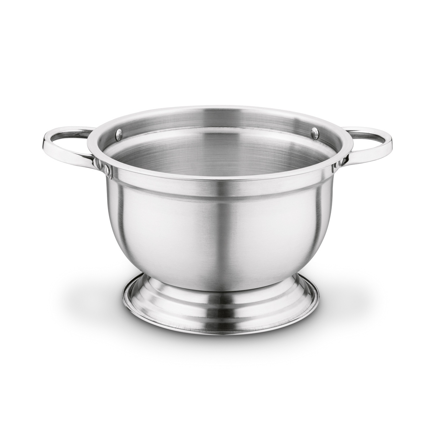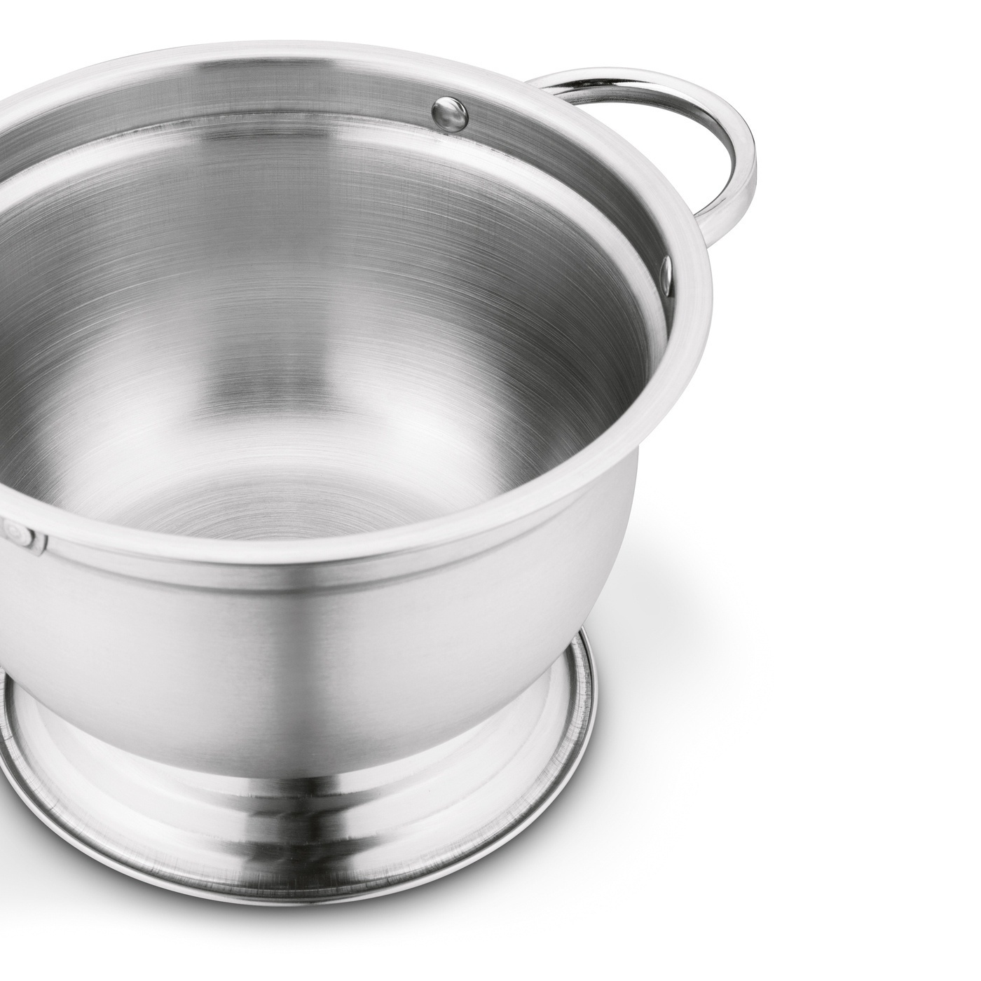 - waza stalowa, wysokość bez pokrywy: 14 cm - uchwyty wazy nitowane - pokrywa stalowa z wyprofilowanym miejscem na nabierkę - uchwyt pokrywy przykręcany - pojemność całkowita: 2,7 l - pojemność użytkowa: 2,5 l - średnica podstawy: 16,5 cm |