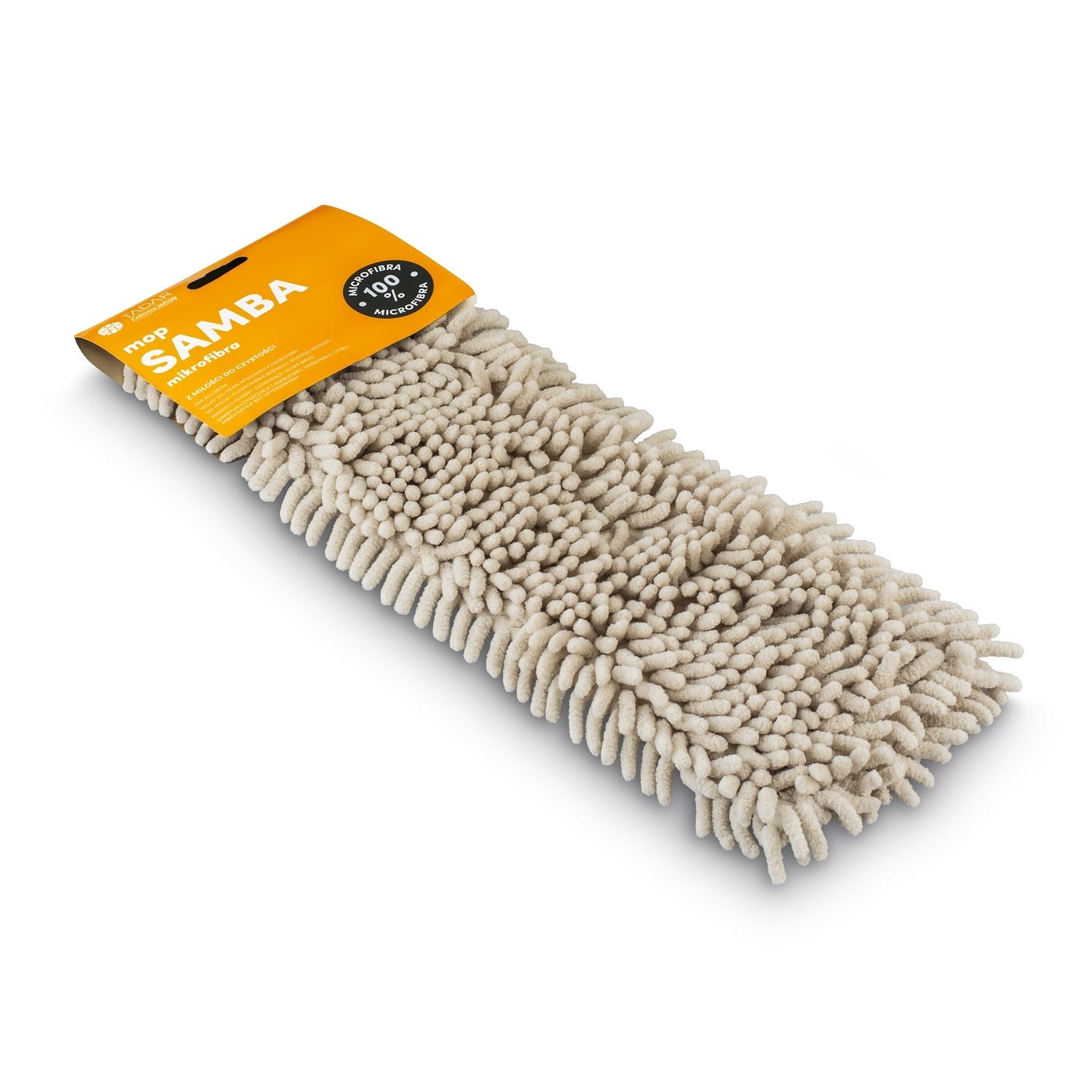 Wyjątkowo chłonny i bardzo trwały zapasowy wkład do mopa płaskiego. Końcówka została wykonana z wysokiej jakości mikrofibry. Mop z łatwością poradzi sobie z uporczywymi plamami oraz innymi zabrudzeniami pozostawiając podłogę idealnie czystą. Doskonale sprawdzi się przy czyszczeniu wszystkich rodzajów podłóg, nawet bez użycia detergentów.