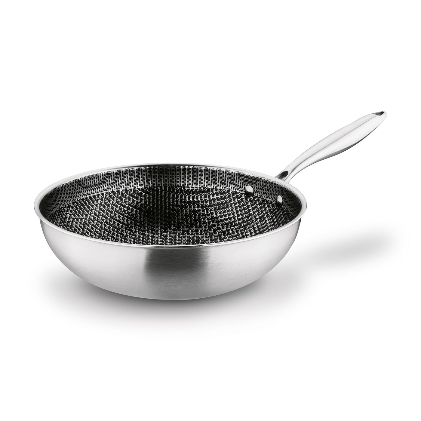 - wok wykonany ze stali nierdzewnej - korpus trzywarstwowy (stal, aluminium, stal) - powłoka non stick nakładana innowacyjną metodą wytrawiania - powłoka trzywarstwowa - PFOA free - uchwyt stalowy nitowany - pokrywa szklana ze stalowym rantem i odpowietrznikiem - uchwyt pokrywy stalowy, przykręcany - wok bez pokrywy można używać w piekarniku - maksymalna temperatura użytkowania: 220 st. C. |