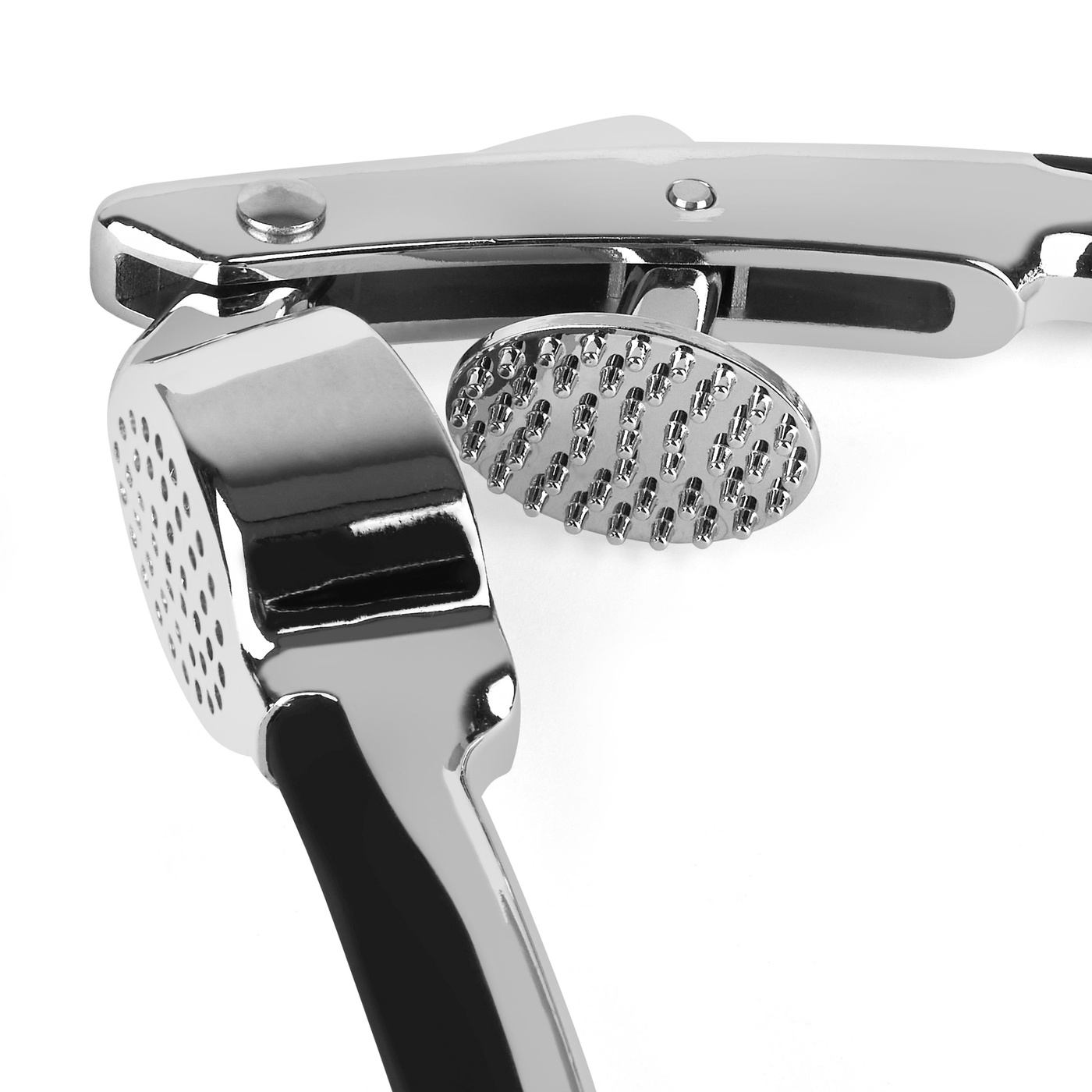 Model ten został wykonany ze stopu cynku (higienicznego i łatwego w czyszczeniu). Rączka otrzymała natomiast wykończenie w postaci czarnego tworzywa soft touch, które jest zarówno przyjemne w dotyku, jak i oferuje użytkownikowi dobre zabezpieczenie przed ślizganiem się praski do czosnku w dłoni.