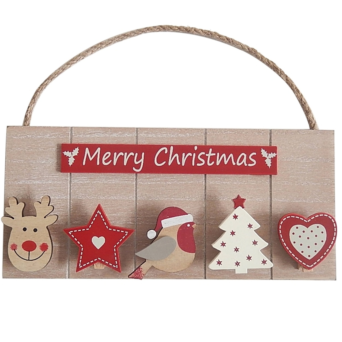 - wykonane z płyty MDF - uchwyt w postaci sznurka - grafika o tematyce zimowo- świątecznej - napis "Merry Christmas" - kolorystyka w odcieniach bieli i beżu z akcentami czerwieni - 5 klamerek - każda klamerka zamaskowana innym symbolem świątecznym - możliwość podczepienia kilku kartek pod każdą z klamerek |