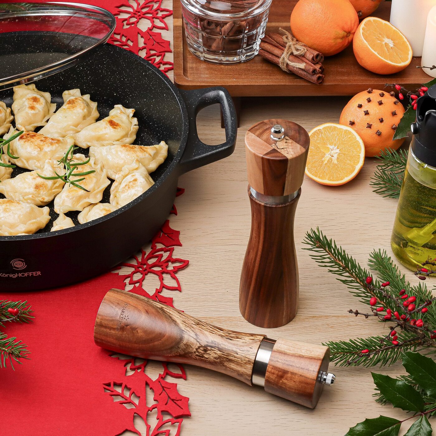Dzięki ceramicznym żarnom dokładnie wszystko zmielą. Możesz nawet regulować w nich gradację mielenia. Doprawisz potrawy, kanapki, sosy i zrobisz to sprawnie. Natomiast poręczny kształt obu młynków służy wygodnemu ustawieniu w zasięgu dłoni.
