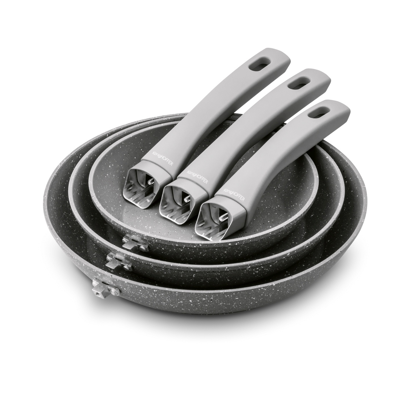 Co więcej, prezentowany komplet 3 patelni działa na indukcji oraz pozostałych kuchenkach, gwarantując energooszczędne tworzenie potraw. Na dodatek nagrzewa się równomiernie i sprawnie. Praktycznym dodatkiem w tym modelu są nitowane rączki soft touch. Ten typ uchwytu nie nagrzewa się i nie ślizga w dłoni - z łatwością przeniesiesz patelnie indukcyjne Greys w mokrej dłoni i bez trudu unikniesz przypadkowego oparzenia!