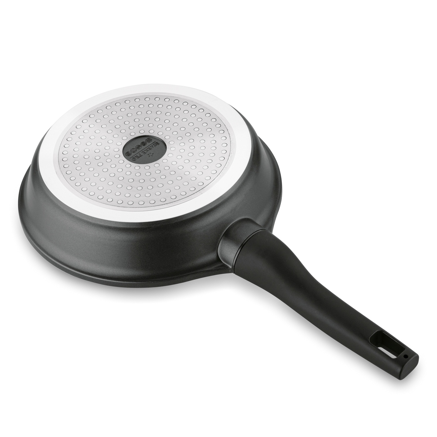 Naprawdę wystarczy odpiąć rączkę! Zobaczysz, że tak łatwiej znaleźć dla nich miejsce w domowej kuchni. Patelnia naleśnikowa i 2 patelnie uniwersalne Svart mają solidny, masywny korpus aluminiowy odlewany z aluminium. Dzięki temu nagrzewają się równomiernie, są dobrze chronione przed uszkodzeniem, no i pozwalają na energooszczędne smażenie. Naczynia są też bardzo dobrze wyważone.