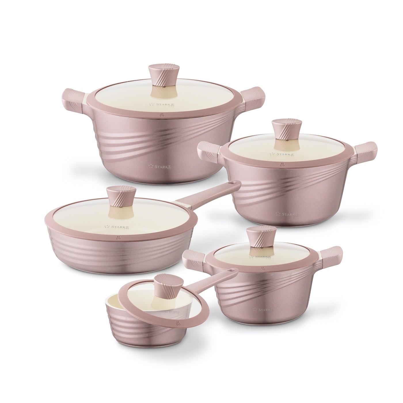 Kompleksowo zaopatrzysz domową kuchnię. Komplet Starke Pro Naturale Rose Gold otrzymał oznaczenie PFOA i PFAS Free (bezpieczny dla środowiska i wolny od toksycznych substancji!) i rekomendację Piotra Kucharskiego. Jako profesjonalny szef kuchni poleca on naczynia z kolekcji Naturale do domowego użytkowania i wieloletniego smażenia oraz gotowania!
