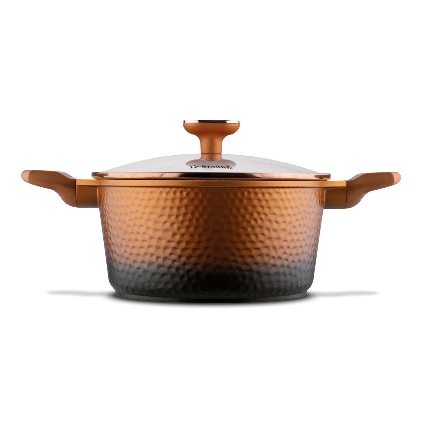 Zestaw Starke Pro Texture Copper został skomponowany z myślą o kuchniach, w których liczy się nie tylko funkcjonalność, ale również estetyka. Połączenie garnków o nowoczesnym wykończeniu z ręcznie wykonanymi nożami kuchennymi tworzy komplet, który wspiera każdy etap przygotowywania posiłków.