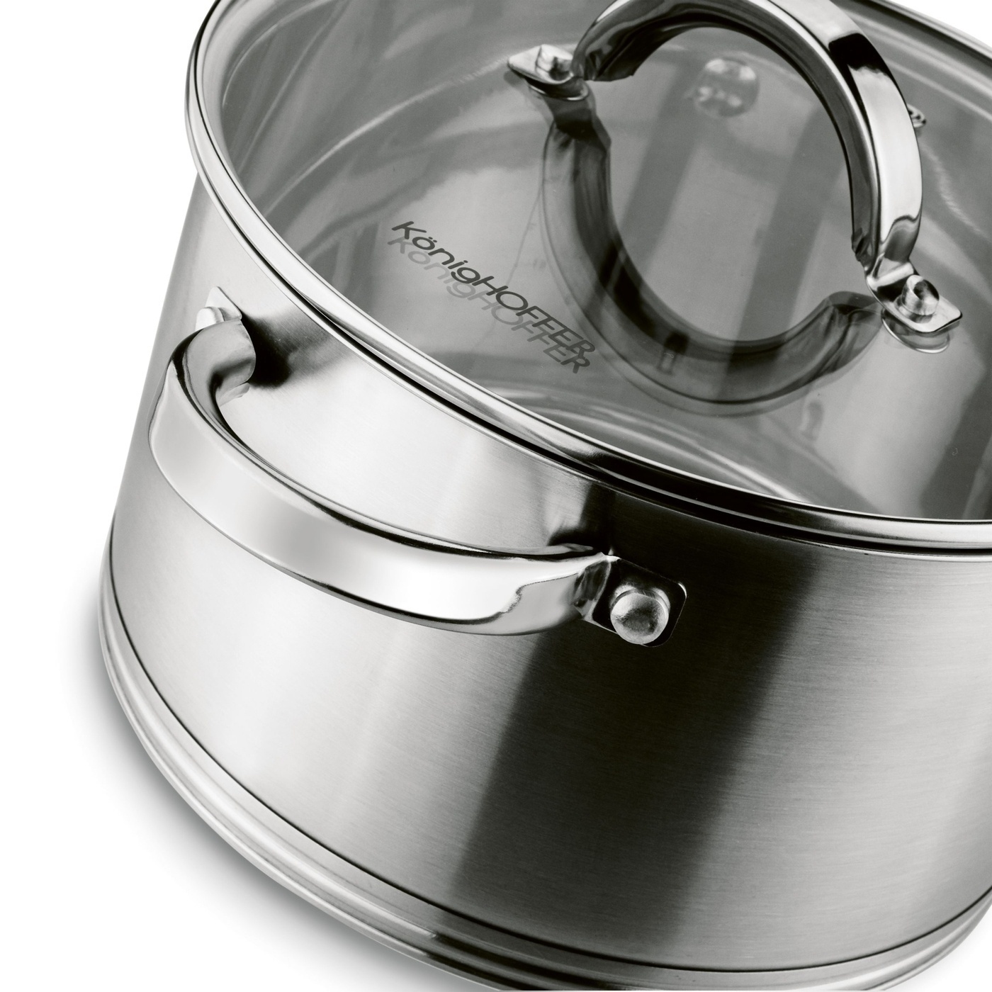 Zestaw Konighoffer Petra sprawdzi się zarówno w codziennym użytkowaniu, jak i podczas przygotowywania większych posiłków dla rodziny. To praktyczna baza do gotowania wielu potraw jednocześnie, bez kompromisów w zakresie wygody i estetyki.