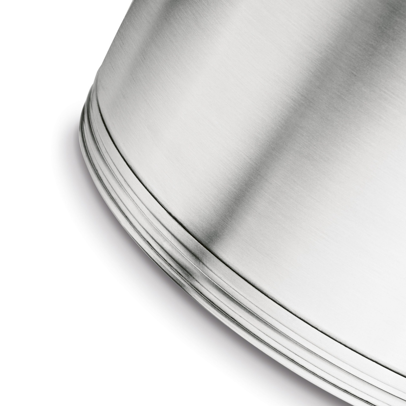 - garnki wykonane ze stali nierdzewnej typu 304, wykończenie zewnętrzne: satyna - uchwyty stalowe nitowane - pokrywy szklane ze stalowym rantem i odpowietrznikiem - grubość ścianki: 0,5 mm - grubość dna: 3,5 mm |