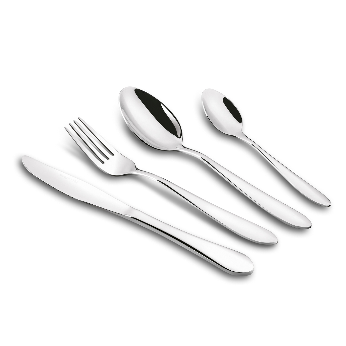 Sztućce wykonano ze stali nierdzewnej, która charakteryzuje się trwałością oraz odpornością na działanie wilgoci. Materiał ten nie wpływa na smak potraw i zachowuje swoje właściwości podczas codziennego użytkowania. Gładka powierzchnia ułatwia czyszczenie i pielęgnację.